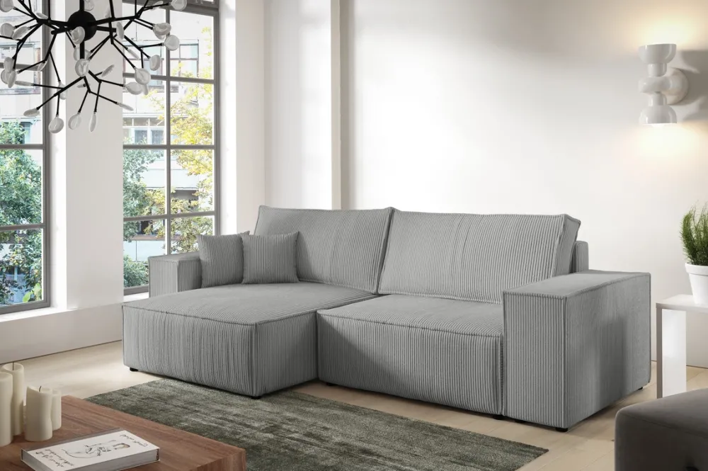 Sztruksowy narożnik z funkcją spania PEDRO to nowoczesny design połączony z innowacyjnymi rozwiązaniami, które sprawią, że stanie się on centralnym punktem każdego salonu. Zapraszamy do wypróbowania i zakochania się w każdym detalu tego wyjątkowego mebla.