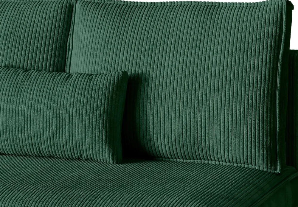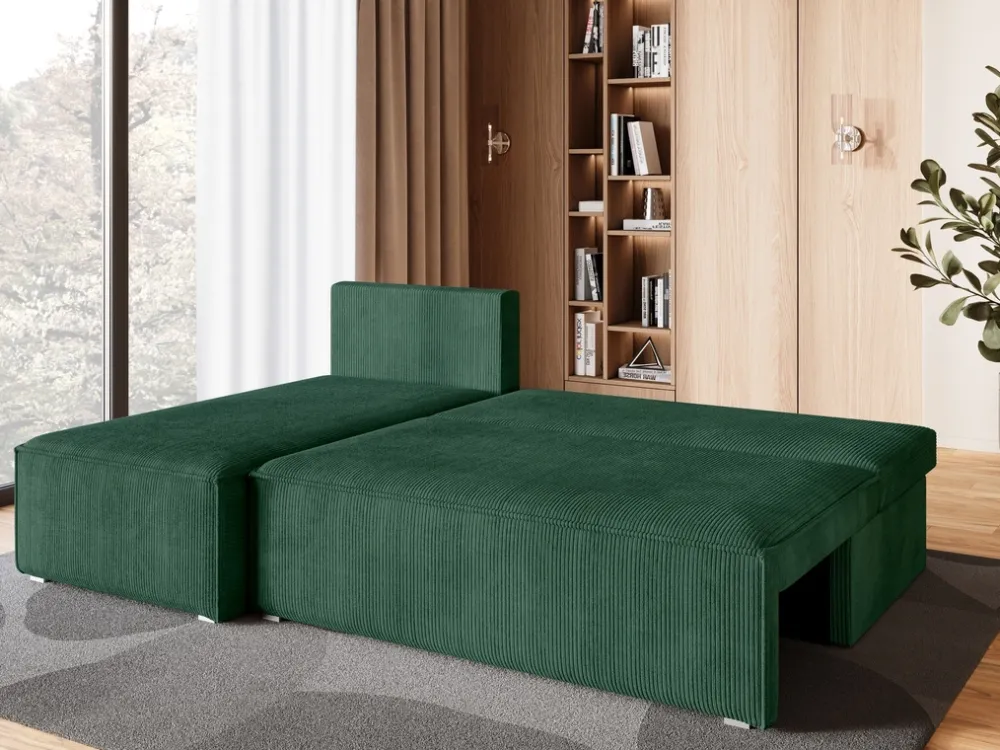 - Rozkładany narożnik do salonu TOP SLIM o powierzchni spania 120×200 cm z pewnością odmieni chwile spędzone w salonie. Narożnik z funkcją spania obity został sztruksową tkaniną Poso w zielonym kolorze. Pod siedziskiem znajduje się pojemnik na pościel.