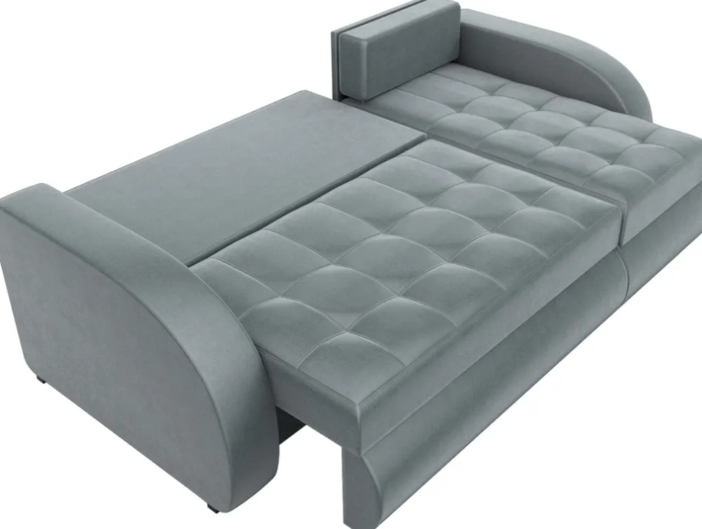 - Funkcja spania o powierzchni 138 × 200 cm pozwala na komfortowy sen dla gości lub relaksująca drzemkę w ciągu dnia. Narożnik rozkładany jest „na kółkach„, który wspomaga unoszenie siedziska ku górze.