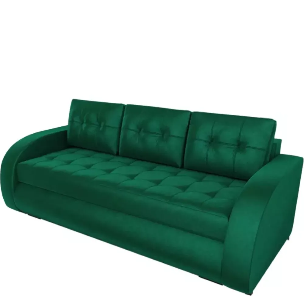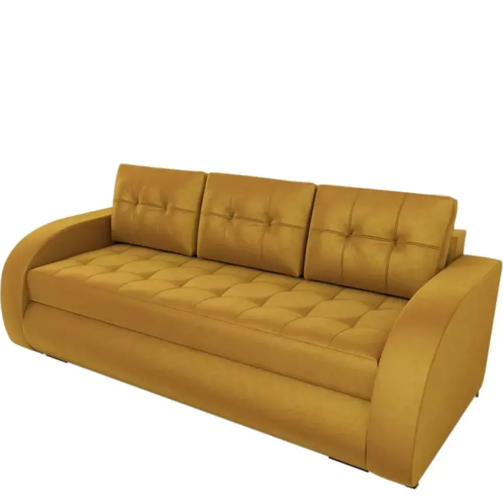 Elegancka kanapa dość uniwersalna, aby sprawdzić się w salonie, pokoju dziennym czy pokoju młodzieżowym. Wyjątkowa konstrukcja wykonana z materiałów wysokiej jakości. Siedzisko oraz oparcie składa się ze sprężyn bonell gwarantujących komfort, oraz dłuższą żywotność. Dodatkową funkcjonalnością jest obszerna powierzchnia spania o wymiarach 150×200 cm wyposażona jednocześnie w mechanizm ułatwiający rozkładanie w systemie DL, dzięki któremu do dyspozycji otrzymają państwo również pojemnik na pościel znajdujący się pod siedziskiem.
