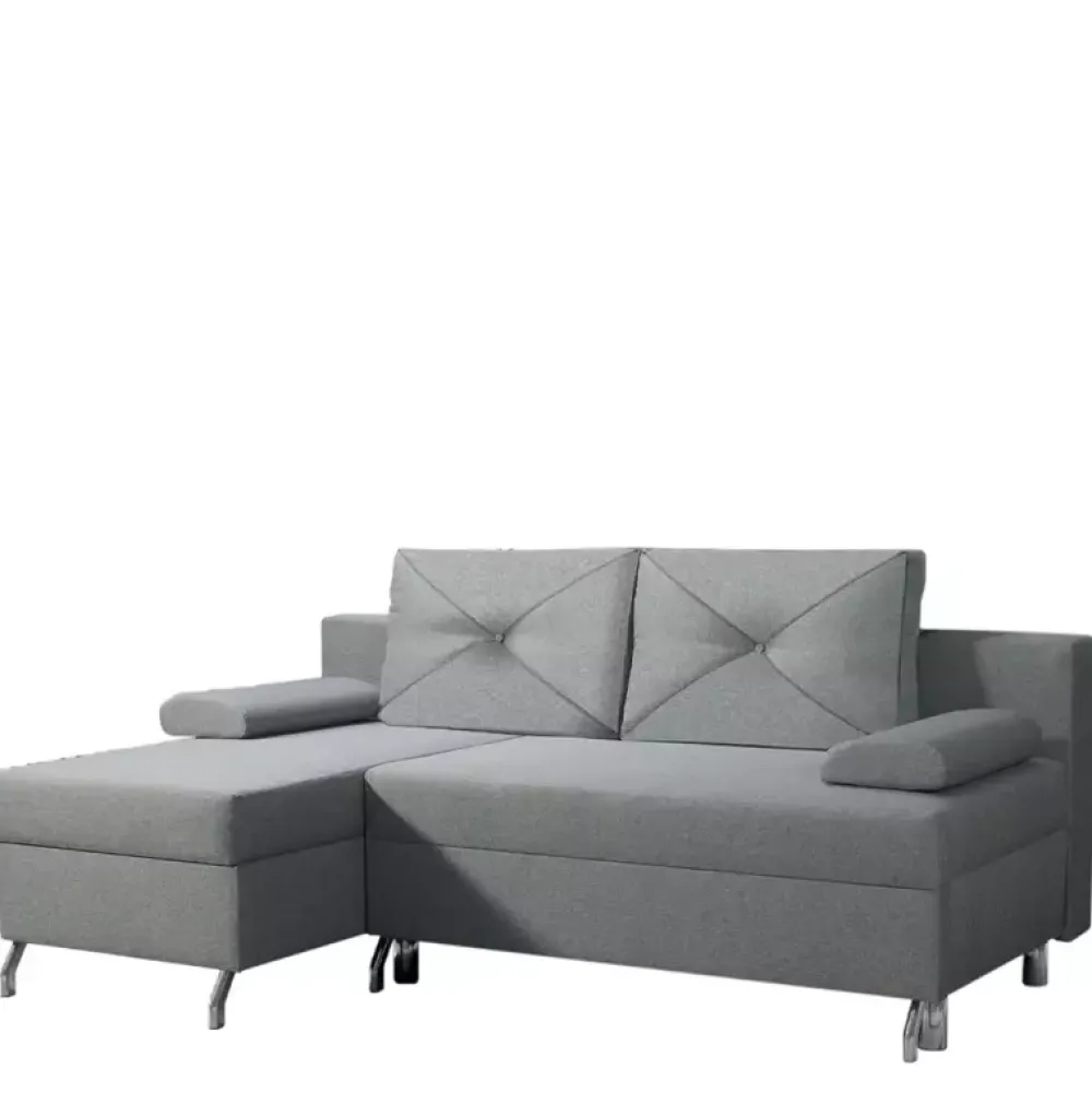 - W wersji standardowej narożnik rozkładany jest „na kółkach”, dopłacając do wersji z mechanizmem „DL”, otrzymują państwo dodatkowy obszerny pojemnik na pościel umieszczony pod wysuniętą leżanką, a także mechanizm, który ochroni waszą podłogę przed ewentualnymi uszkodzeniami.