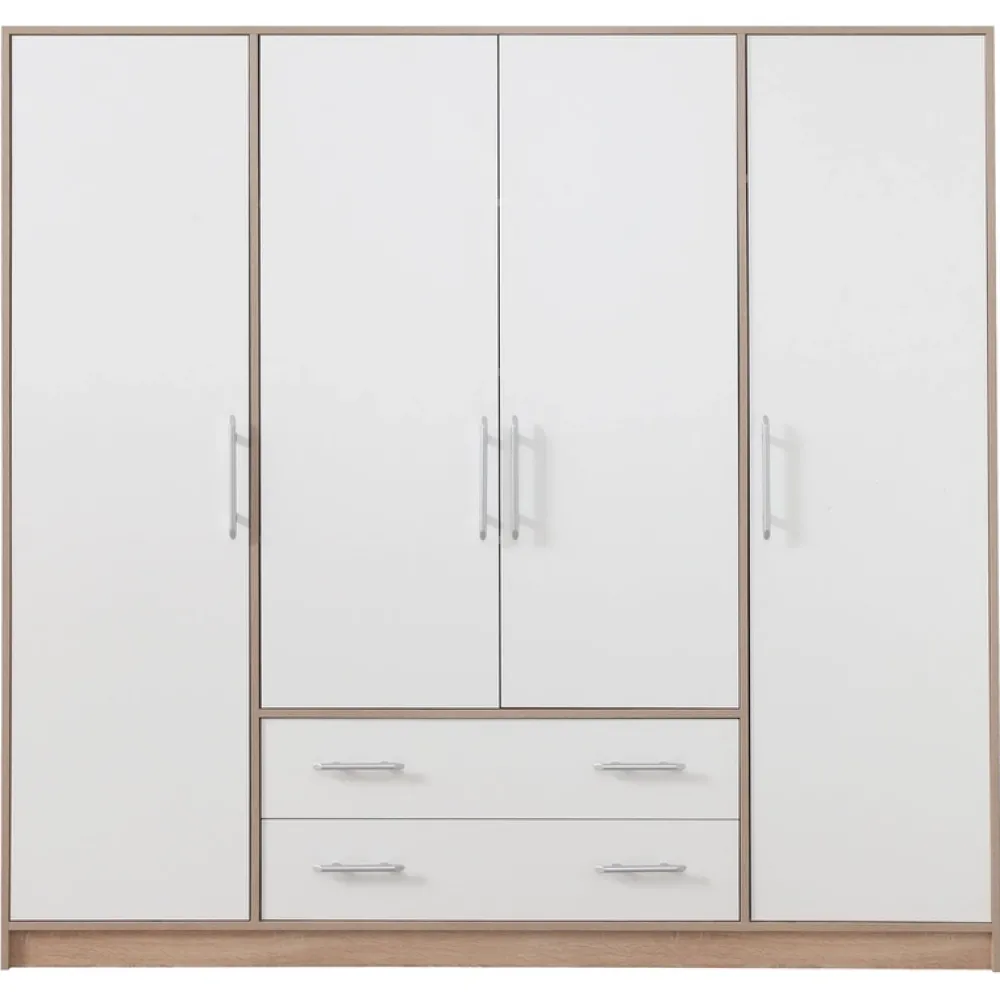 - Zestaw mebli do sypialni SEVAS składa się z trzech pojemnych szaf, które wyposażono w liczne drążki na wieszaki, półki oraz szuflady. Zestaw doskonale sprawdzi się w przypadku większych sypialni oraz garderób.