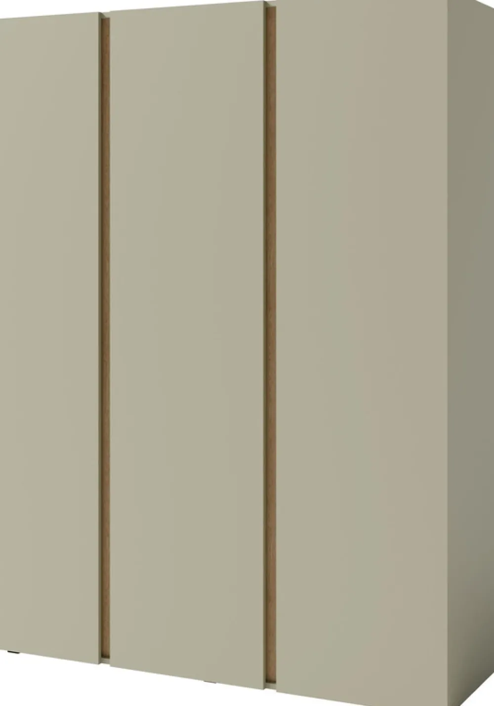 Nowoczesny wygląd podkreśla kolorystyka – możesz wybierać między ciepłym beżem piaskowym a modnym odcieniem eukaliptusa. Każda z tych opcji nada wnętrzu przytulności i stylu, wpisując się w różnorodne aranżacje pokoju. Obrzeża wykończone trwałą okleiną ABS zapewniają dodatkową ochronę przed uszkodzeniami, dzięki czemu szafa zachowa swój świetny wygląd przez lata.