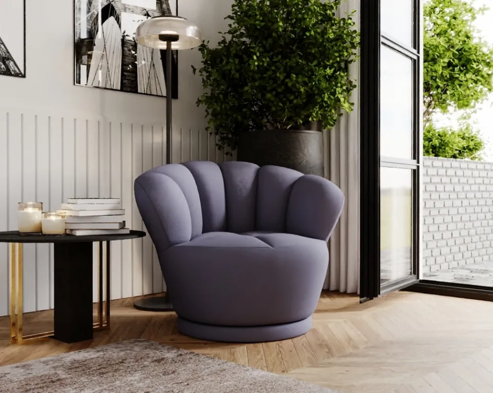 Obrotowy fotel do salonu w kształcie muszli PRESSO to idealny wybór dla osób ceniących unikalny design oraz komfort. Jego opływowe kształty wnoszą do wnętrza nutę nowoczesności, przywodząc na myśl luksusowe detale. Perfekcyjnie wyprofilowane oparcie zapewnia maksymalne wsparcie dla pleców, a wysokiej jakości pianka PUR gwarantuje wyjątkową miękkość i trwałość siedziska.