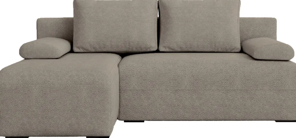 Tkanina boucle, znana ze swojej pętelkowej struktury przypominającej futro baranka, nadaje narożnikowi wyjątkowego charakteru. Jest nie tylko niezwykle przyjemna w dotyku, ale również wytrzymała, co czyni ją idealnym wyborem do intensywnie użytkowanych mebli. Boucle wprowadza do wnętrza ciepło i przytulność, jednocześnie podkreślając nowoczesny styl narożnika.