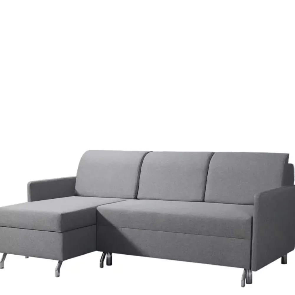 - W wersji standardowej narożnik rozkładany jest „na kółkach”, dopłacając do wersji z mechanizmem „DL”, otrzymują państwo dodatkowy obszerny pojemnik na pościel umieszczony pod wysuniętą leżanką, a także mechanizm, który ochroni waszą podłogę przed ewentualnymi uszkodzeniami.
