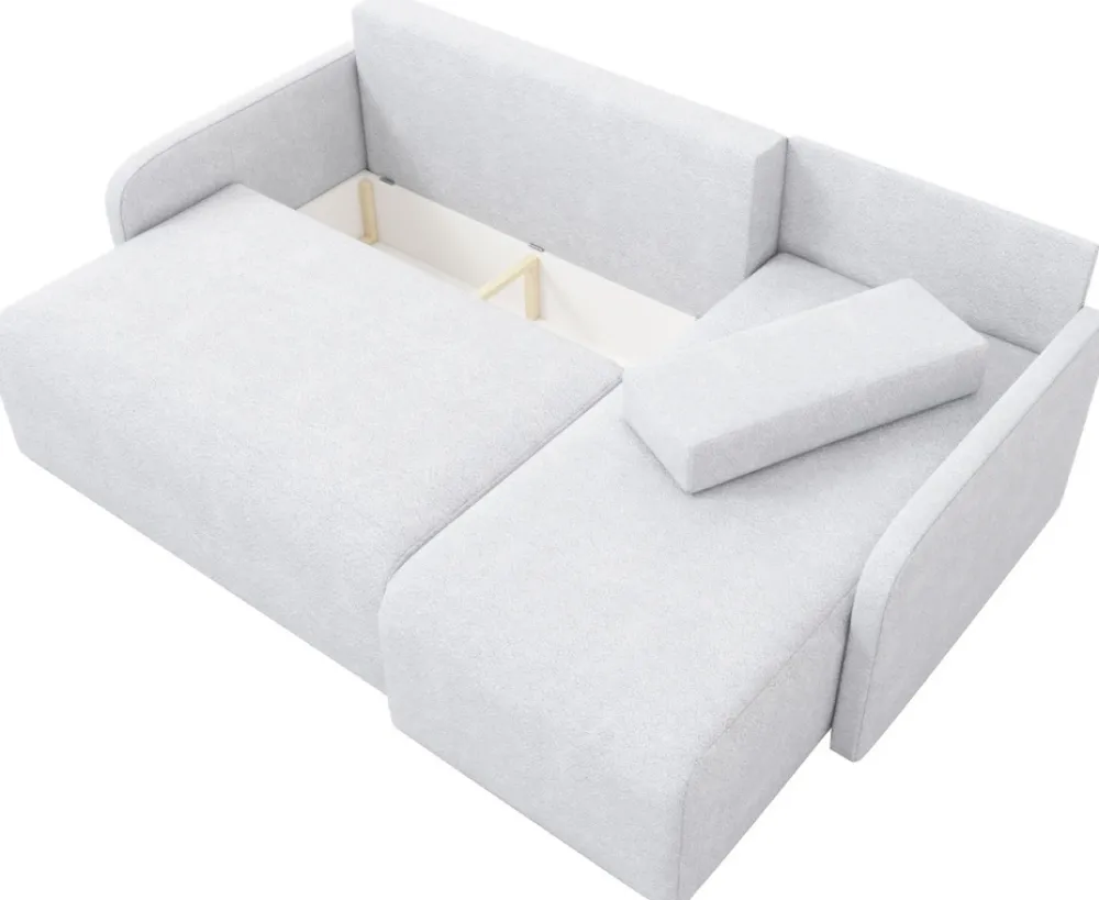 - Mebel posiada pojemnik na pościel pod siedziskiem, umożliwiający przechowywanie poduszek, koców oraz innych akcesoriów, co zwiększa jego funkcjonalność.