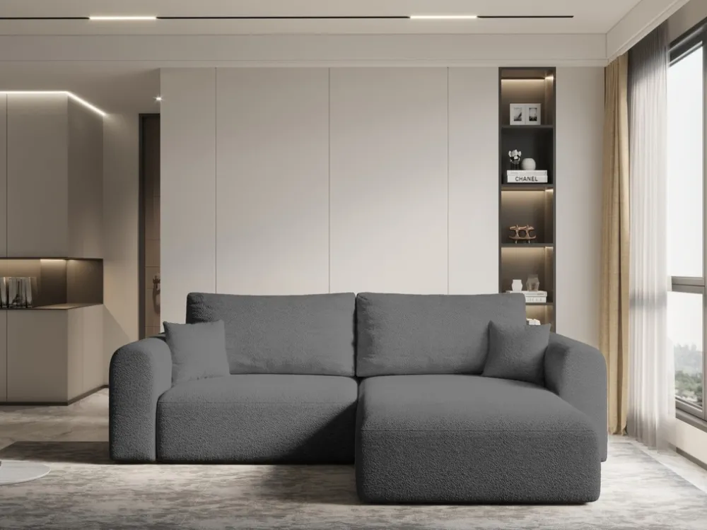 Meble Dla Dzieci|Narożniki>KENIX Nowoczesny szary narożnik z funkcją spania boucle KORNEL