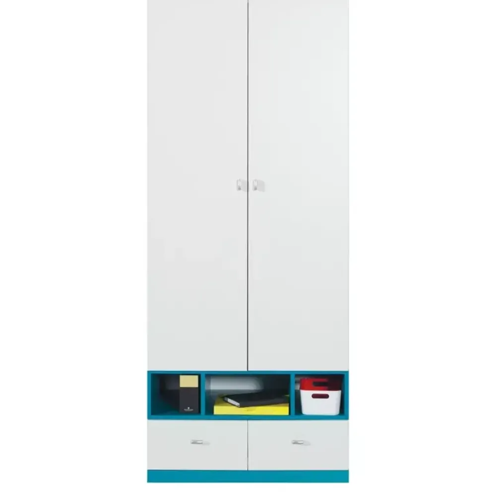 - Szafa z kolekcji MALVES to rozwiązanie, które doskonale sprawdzi się w pokoju dziecięcym. Szafa została wyposażona we dwie szuflady u dołu oraz trzy wnęki nad nimi. Dodatkowo szafa posiada dużą przestrzeń z drążkiem na wieszaki a nad nią dużą półkę.