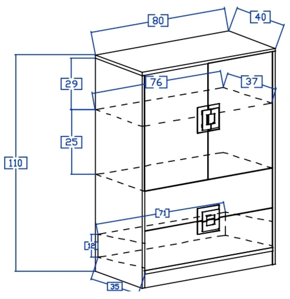 - Korpus oraz fronty wykonane zostały z laminowanej płyty o grubości 16 mm.