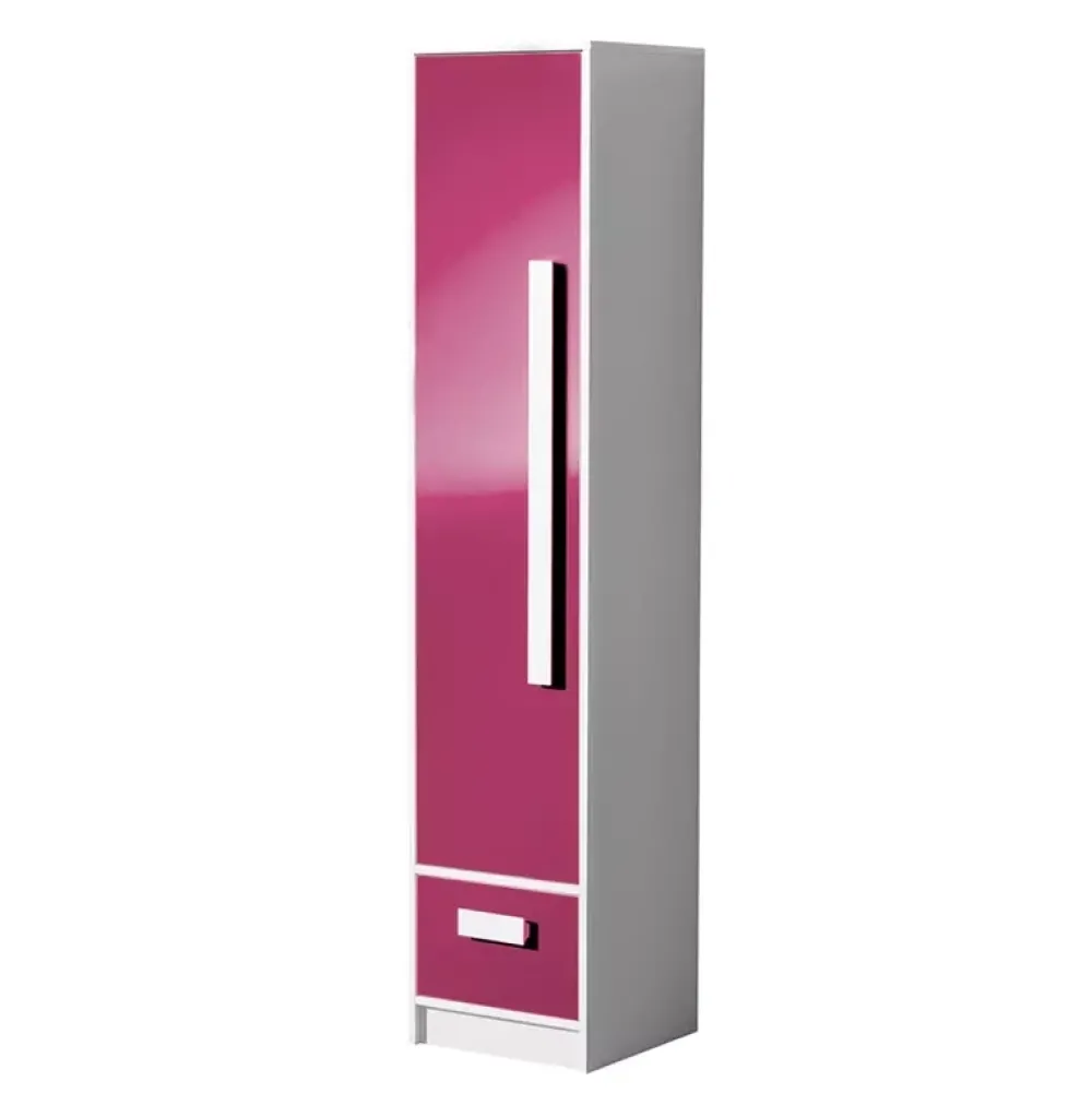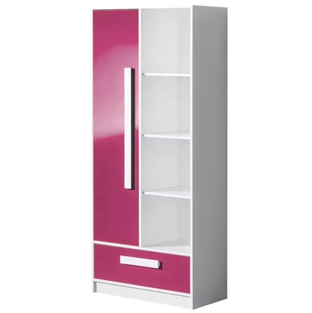 - Zestaw mebli systemowych z kolekcji GULIVER. Komplet wpisuje się we współczesne aranżacje pokoju dziecka. Zestaw składa się z biurka z szufladą, regału zamkniętego, szafy narożnej z dużą przestrzenią na wieszaki oraz regału z otwartymi półkami.