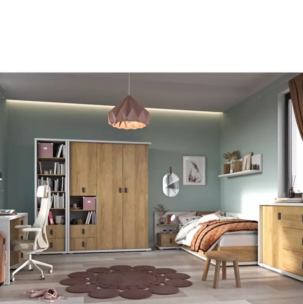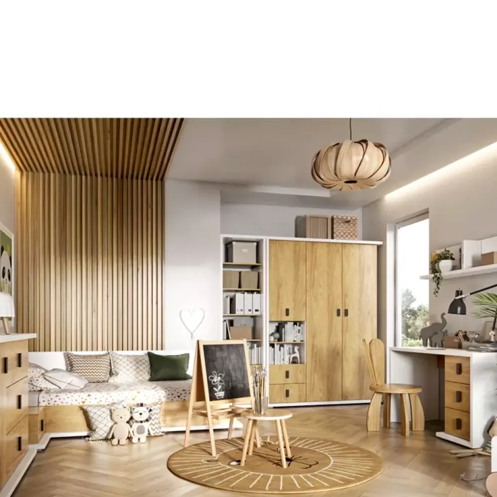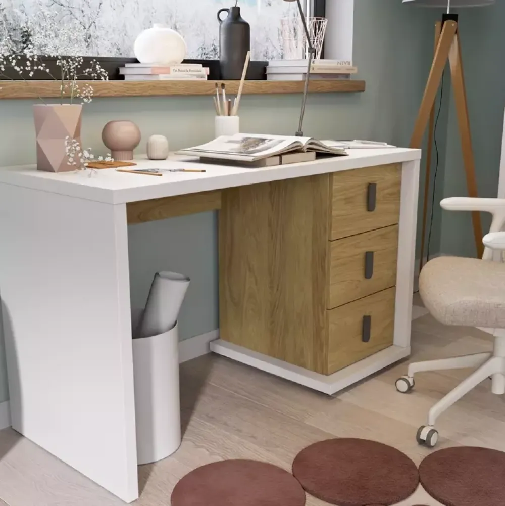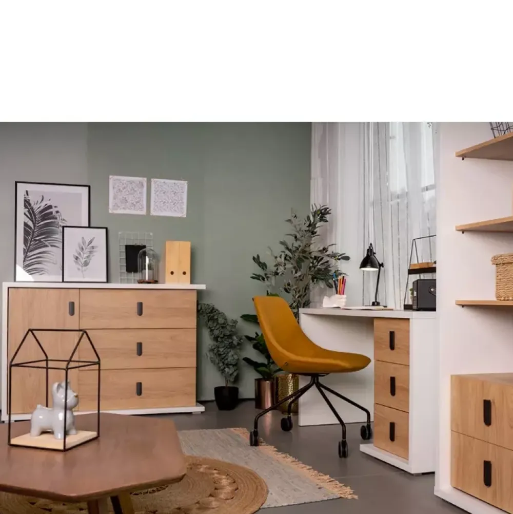 - Biurko dziecięce SIMI zostało wykonane w nowoczesnej stylistyce, zgodnie ze współcześnie panującymi trendami aranżacji pokoi dziecięcych. Biurko posiada blat o szerokości 125 cm oraz szafkę w formie trzech pojemnych szuflad na akcesoria.