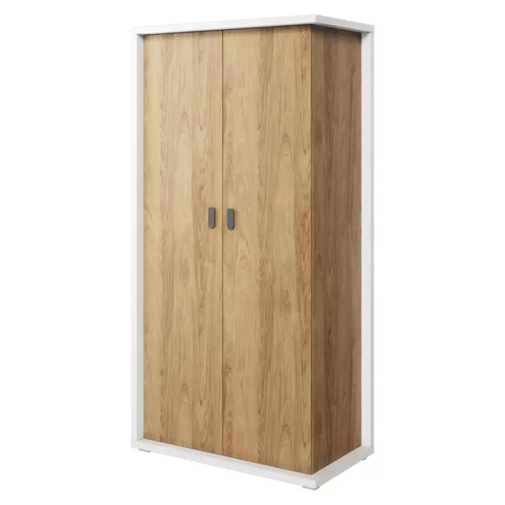 Dodatkowo szafa posiada uchwyty wykonane z metalu w czarnym kolorze.