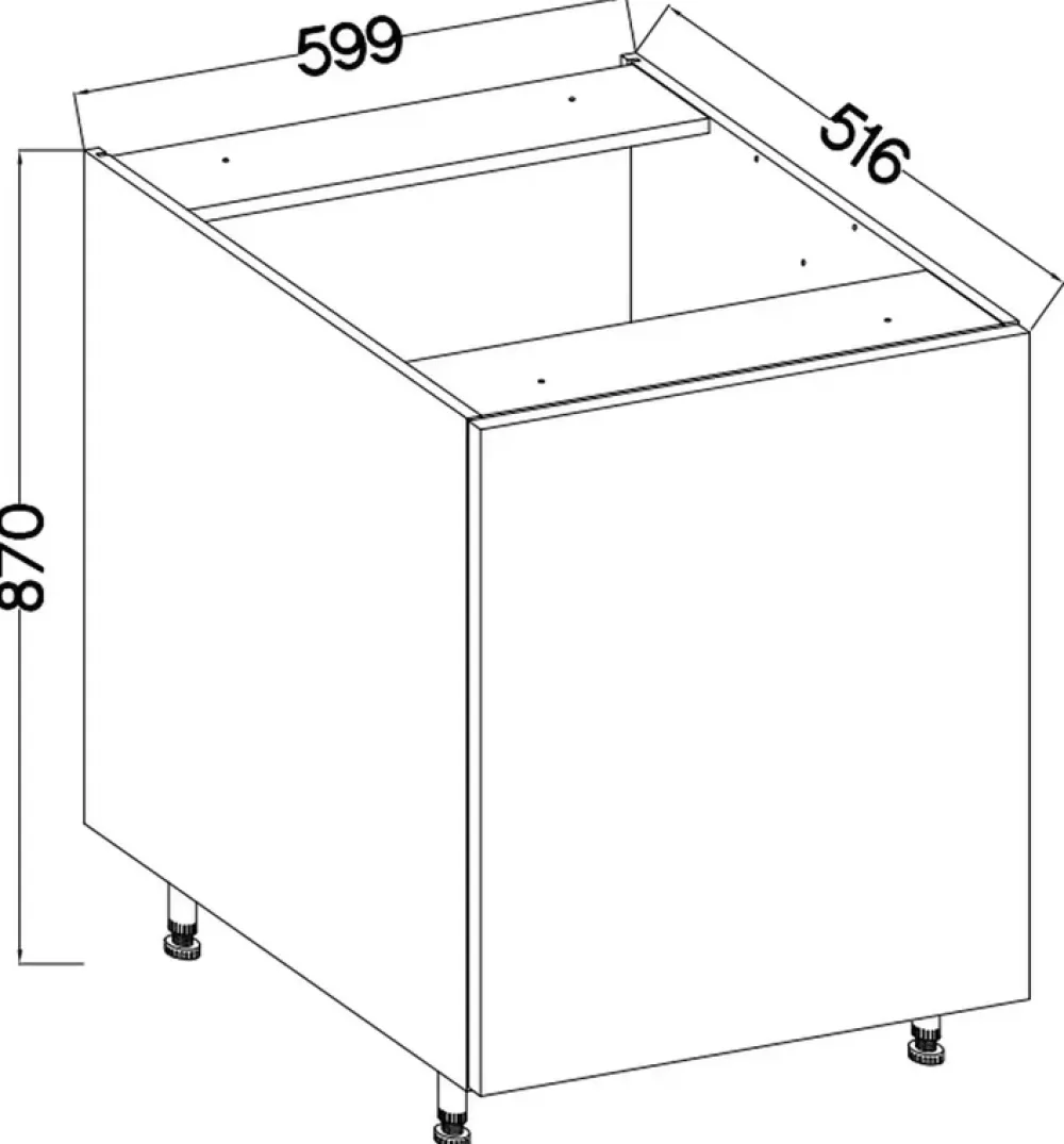 - Nóżki pod zabudowę cokołem z tworzywa sztucznego oraz możliwością regulacji w zakresie 13,5-16 cm.