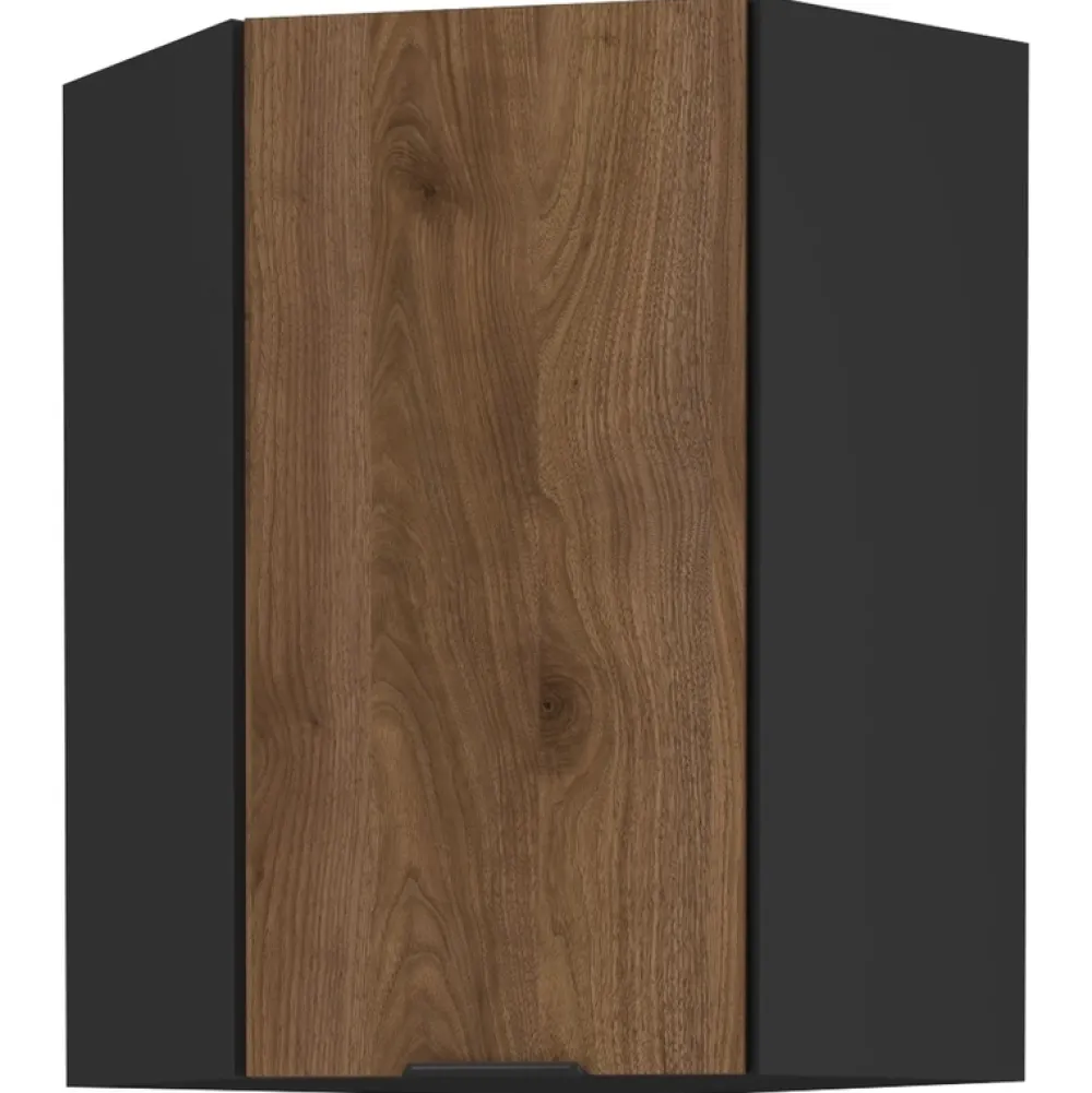 - Zoptymalizuj swoją kuchnię z narożną szafką kuchenną MARGARET. Front w kolorze orzechu okapi. Uchwyt aluminiowy. Szafka wykonana została z płyty laminowanej o grubości 16 mm. Obrzeża zabezpieczone melaminą (korpus) i okleiną ABS (front).