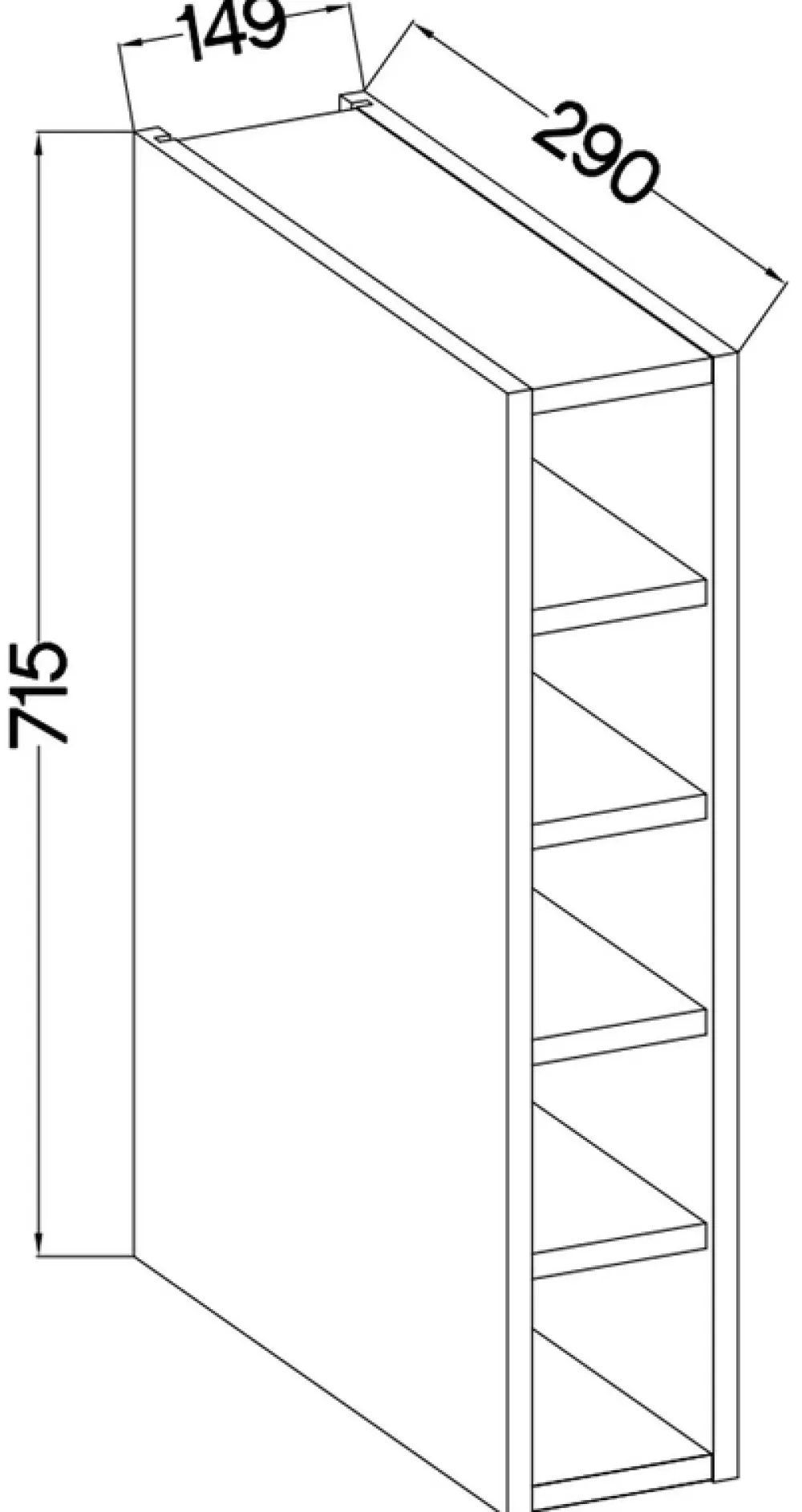 - Regał kuchenny o szerokości 15 cm MARGARET. Regał posiada aż 5 półek. Wykonany został w łatwej w czyszczeniu płyty laminowanej o grubości 16 mm. Obrzeża regału zabezpieczone są melaminą.