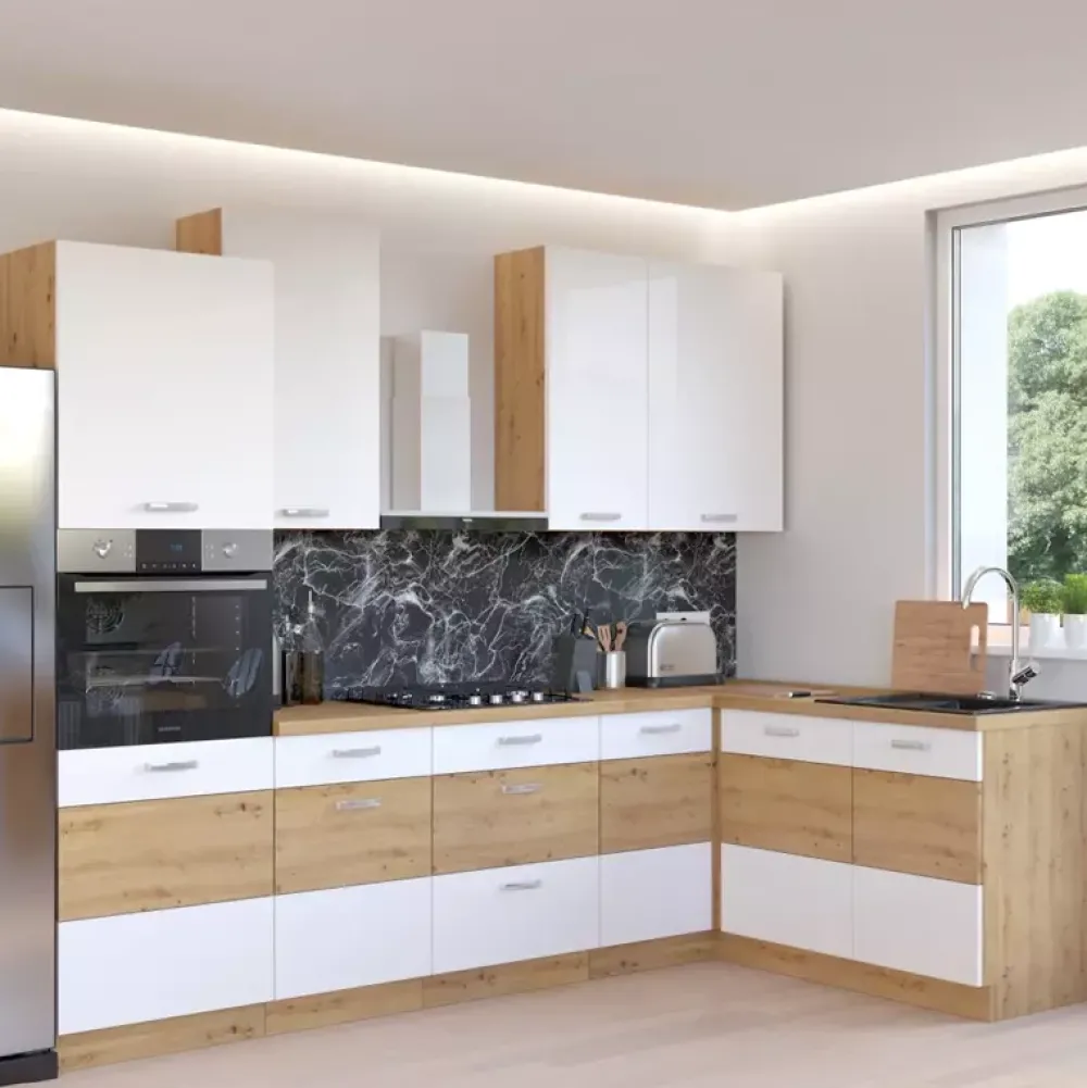 - Fronty: MDF Biały połysk / PCV Biały połysk / Dąb Artisan,
