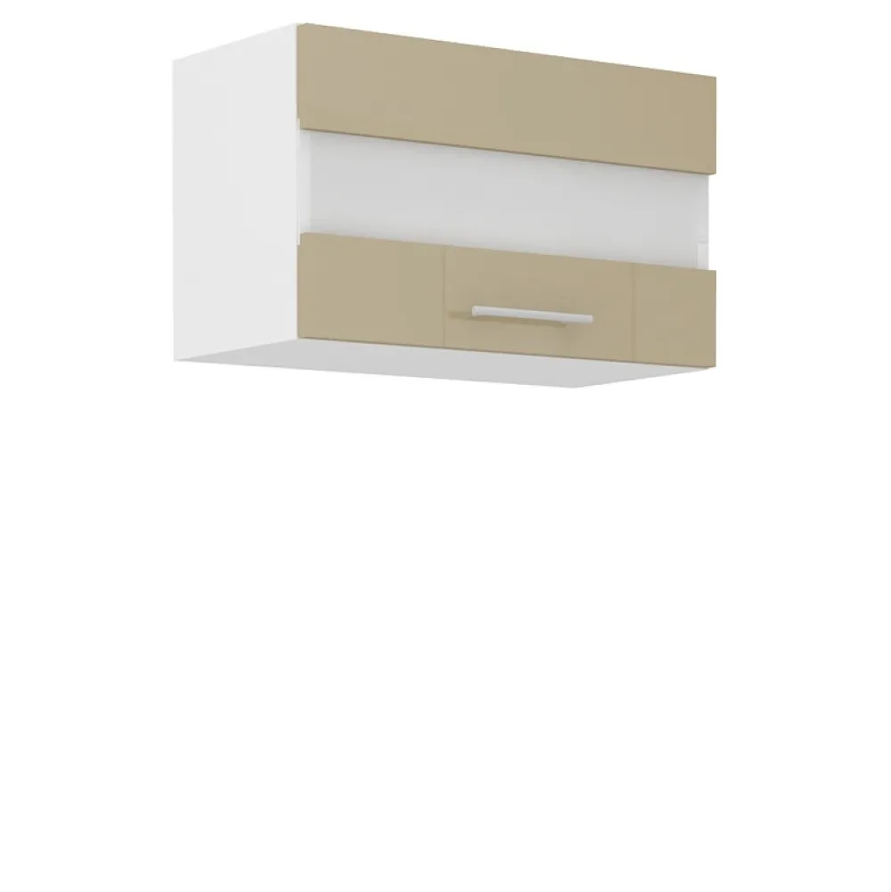 - Front szafki kuchennej wykonany jest z płyty MDF w trzech kolorach wykończonych na wysoki połysk: biały, szary oraz cappucino.