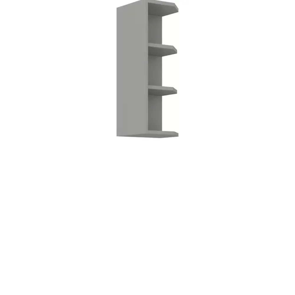 Narożna szafka wisząca bez frontu będzie idealnym zakończeniem ciągu szafek wiszących, na którym znajdziesz miejsce na odłożenie drobiazgów.