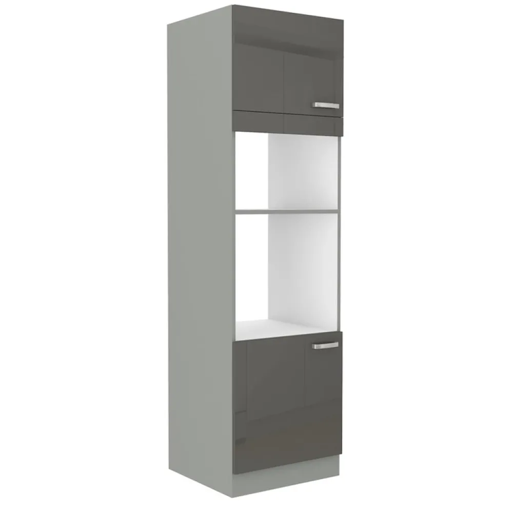 Szafka kuchenna pod zabudowę mikrofali i piekarnika 60 cm SILVER podzielona na dwie części: jedna półka na górze i jedna na dole.