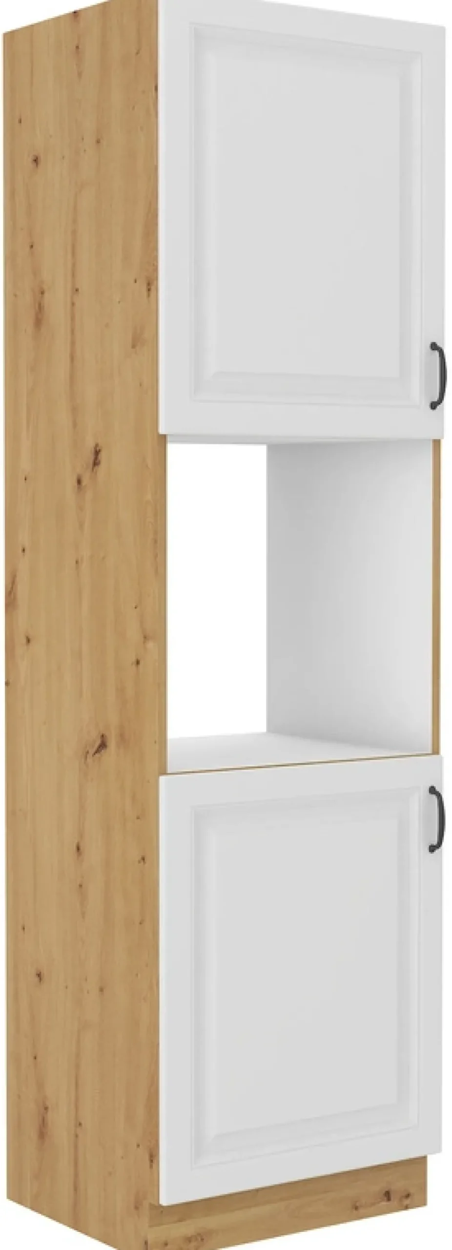 - Wysoka szafka pod zabudowę piekarnika ma 60 cm szerokości i została wyposażona w dwie półki, które dadzą ci cztery wnęki do przechowywania.