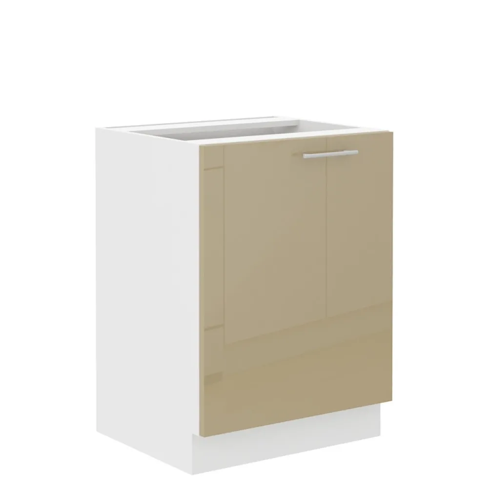 Stojąca szafka kuchenna z półką ma 60 cm szerokości.