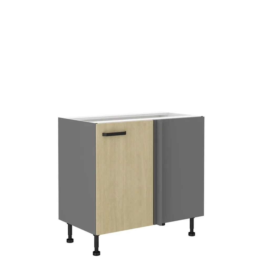 Unikalne fronty w subtelnym wzorze jodełki, dodają ciepła i elegancji, a jednocześnie stanowią doskonałe tło dla różnych akcentów kolorystycznych i dekoracyjnych. Dodatkowo fronty świetnie kontrastują z korpusami w kolorze antracytu, który stanowi uzupełnienie wyjątkowego koloru jodełki scandi, oraz dodaje charakteru i nowoczesności każdej kuchni.
