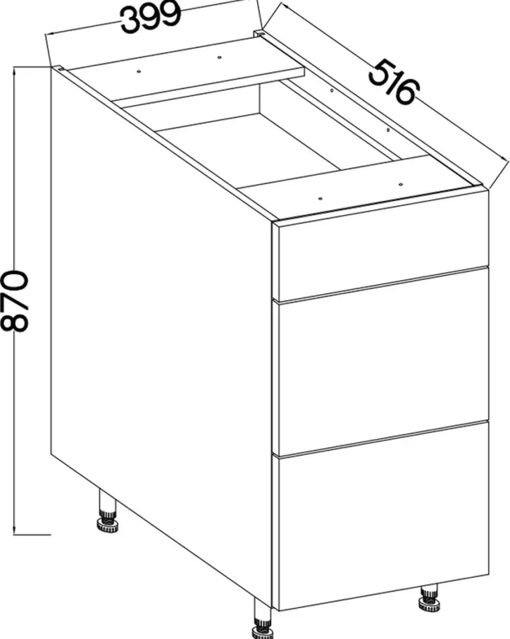 - Nóżki pod zabudowę cokołem z tworzywa sztucznego oraz możliwością regulacji w zakresie 13,5-16 cm.