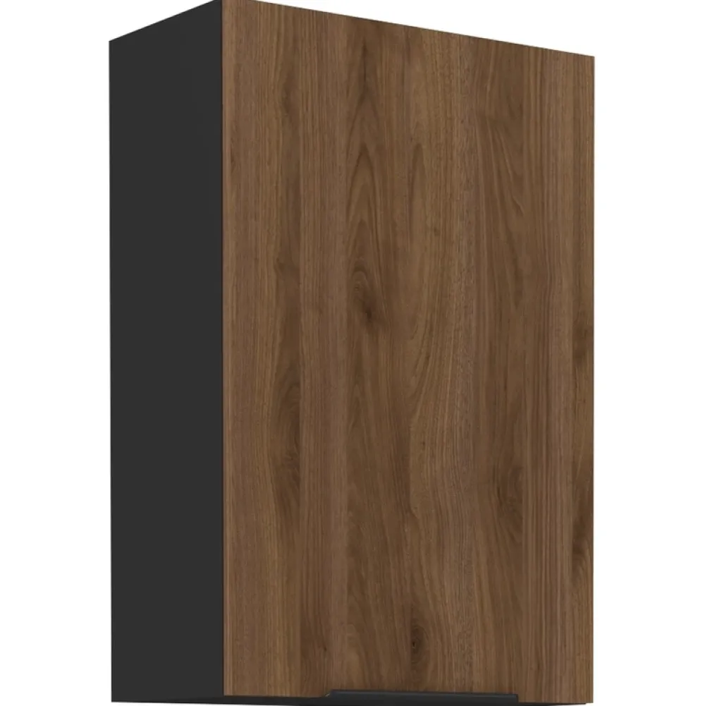 - Front w głębokim kolorze orzechu okapi wykonany został z płyty laminowanej o grubości 16 mm.