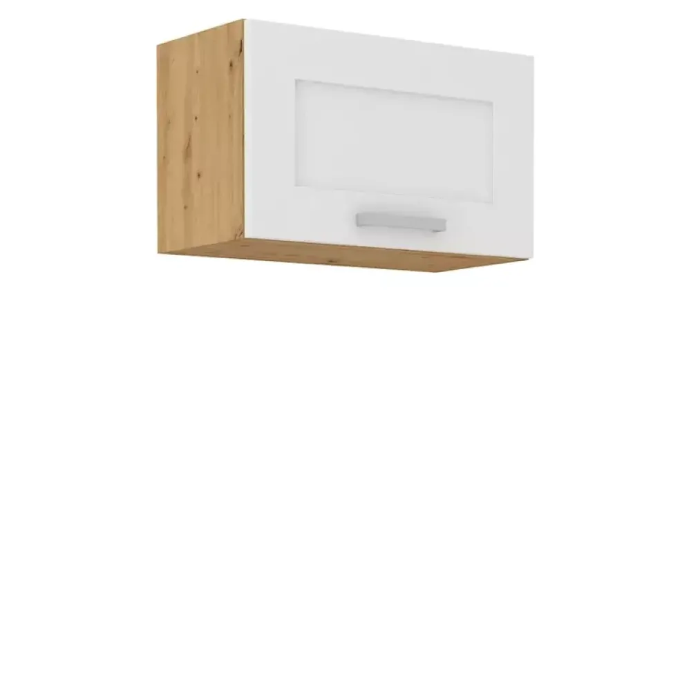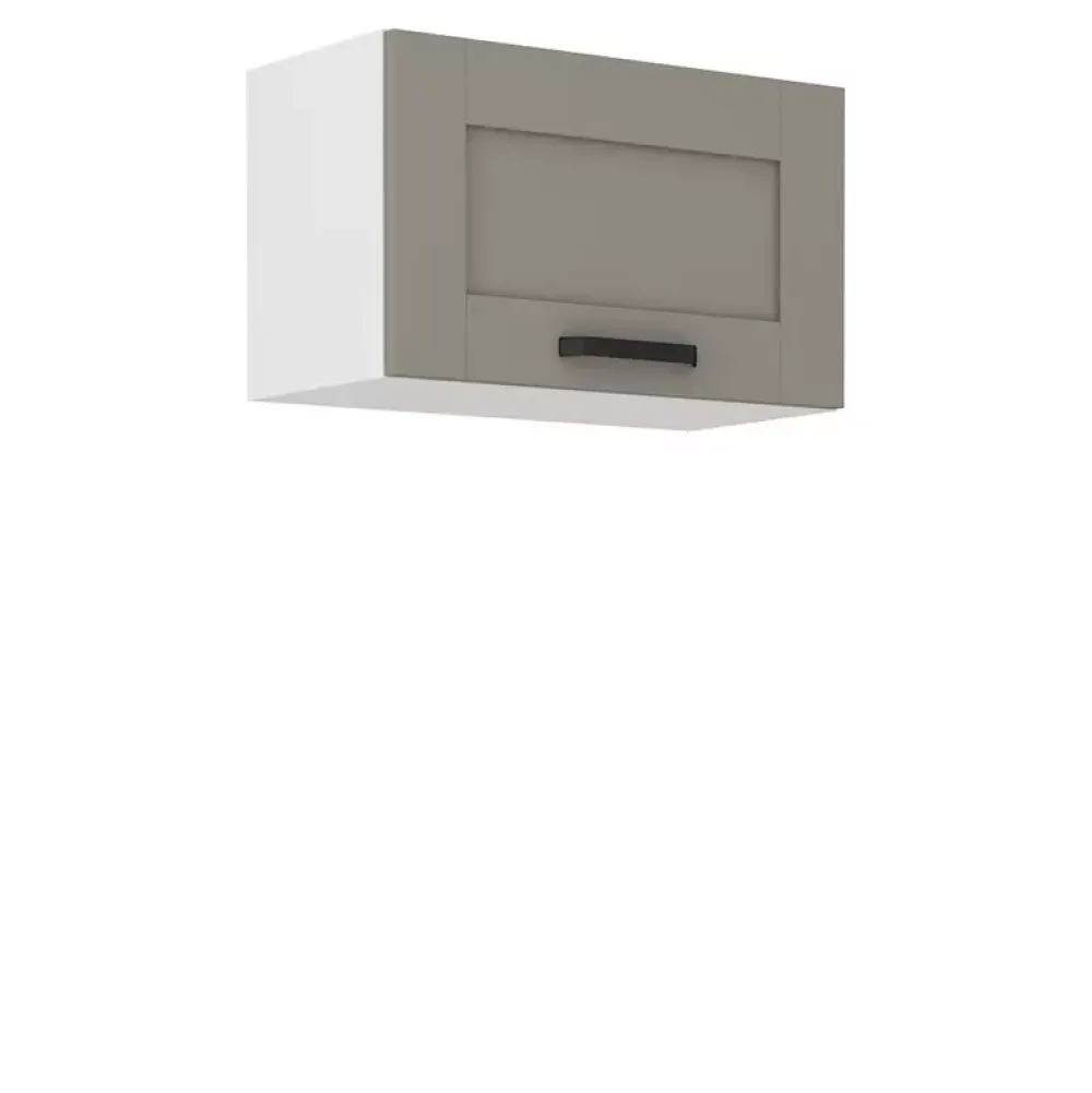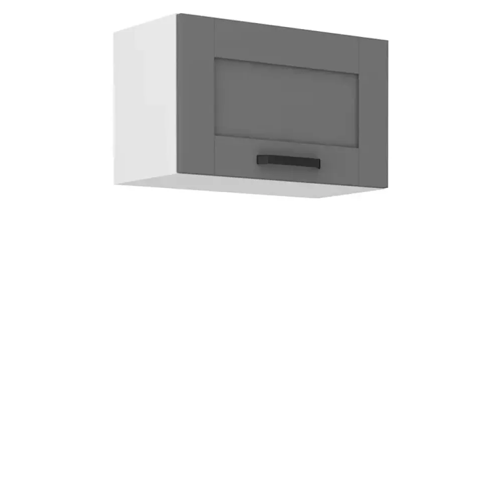 Wisząca szafka kuchenna AWINION nie posiada wewnątrz półek. Szafka ma drzwiczki uchylne, podnoszone na podnośnikach gazowych ku górze. Wybierz odpowiadający Ci kolor korpusu i frontów, klikając przycisk „Dopasuj i kup”.
