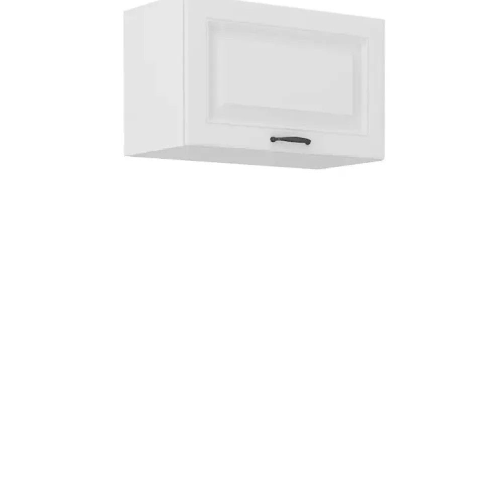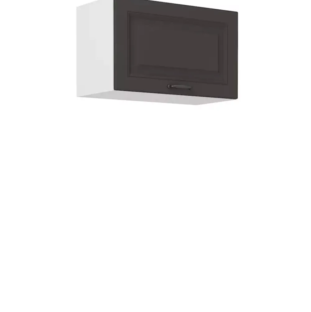 Kuchenna szafka nad okap z frontem uchylanym do góry. Szafka nad okap nie posiada wewnątrz półek, a jej atutem są siłowniki gazowe, które gwarantują łatwy dostęp do wnętrza szafki. Możesz zawiesić tę szafkę nad szafkami wysokości 72 lub 90 cm z kolekcji STYLE i stworzyć zabudowę pod sufit. Wybierz odpowiadający Ci kolor korpusu i frontów, klikając przycisk „Dopasuj i kup”.