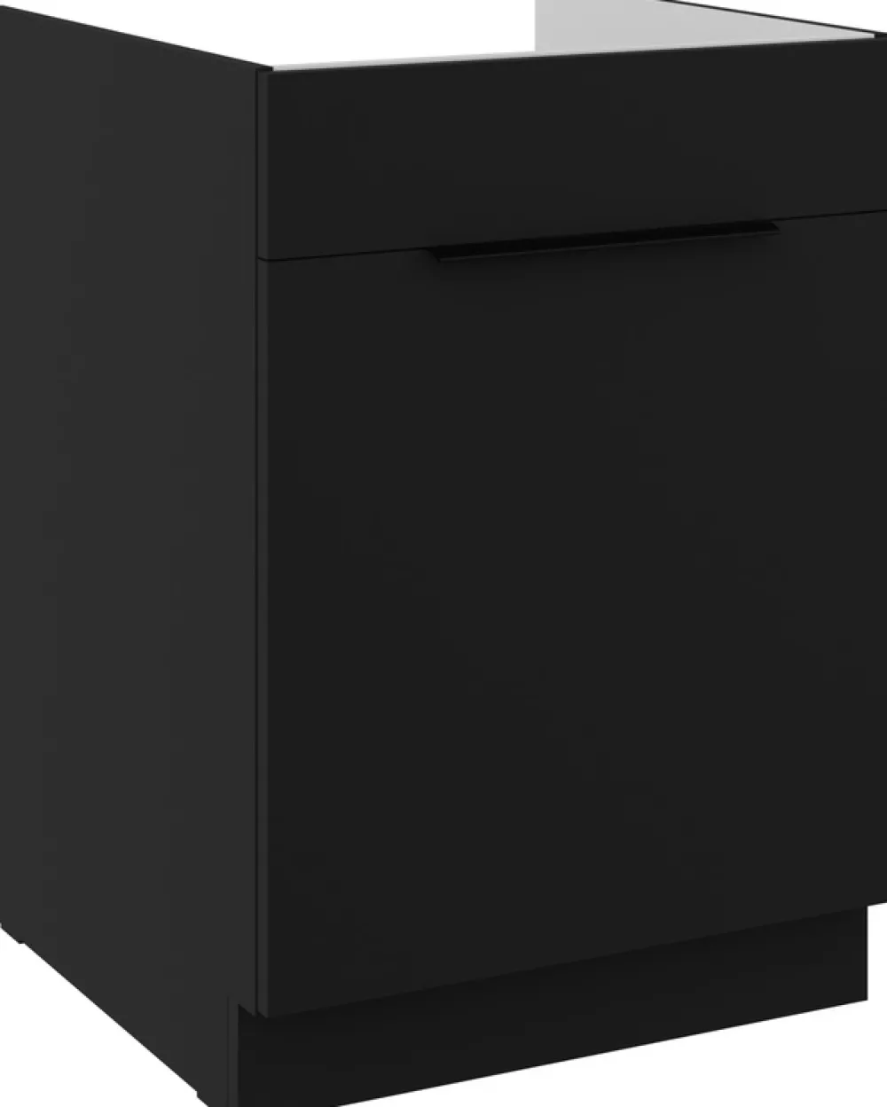 Nasza szafka w głębokim, matowym odcieniu czerni z pewnością będzie wyraźnym akcentem Twojej kuchni, stanowiąc doskonałe tło dla metalowych lub jasnych akcesoriów.
