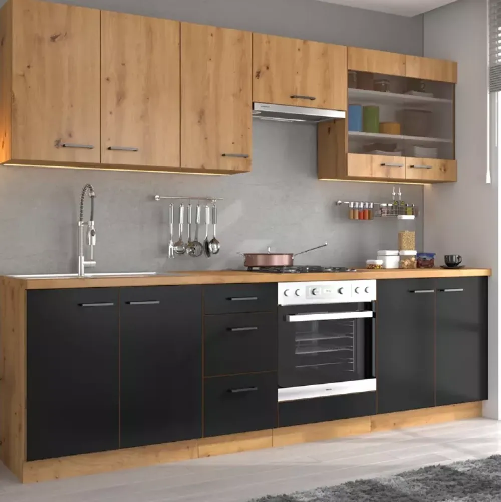 Popularny odcień drewna w połączeniu z kontrastową czernią sprawia, że meble kuchenne MILANO zachwycają nowoczesnym designem.