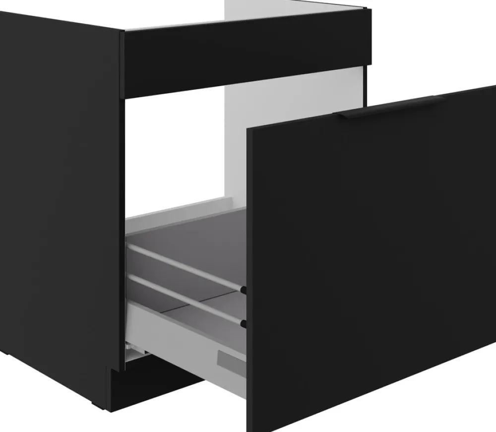 Nasza szafka w głębokim, matowym odcieniu czerni z pewnością będzie wyraźnym akcentem Twojej kuchni, stanowiąc doskonałe tło dla metalowych lub jasnych akcesoriów.
