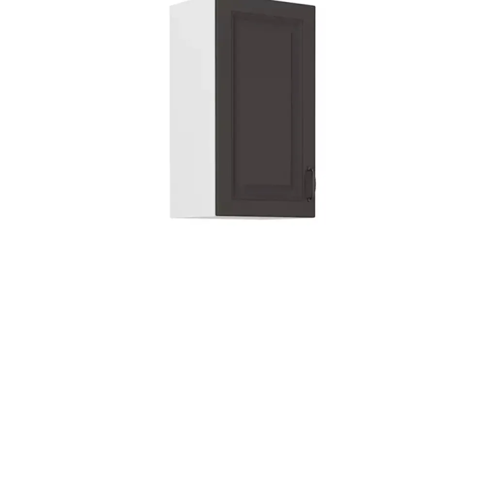 - Kuchenna szafka wisząca o szerokości 40 cm została wyposażona w dwie półki, szafka jest wysoka na 72 cm.