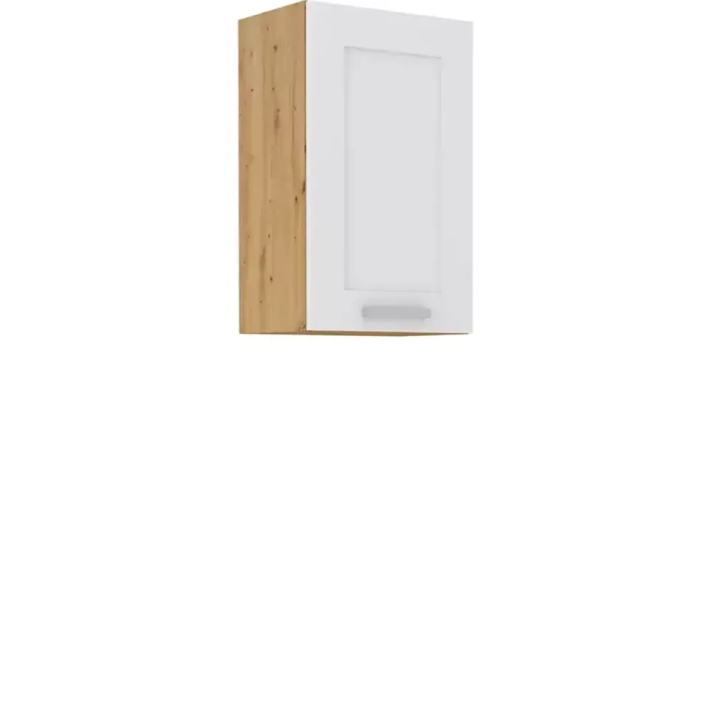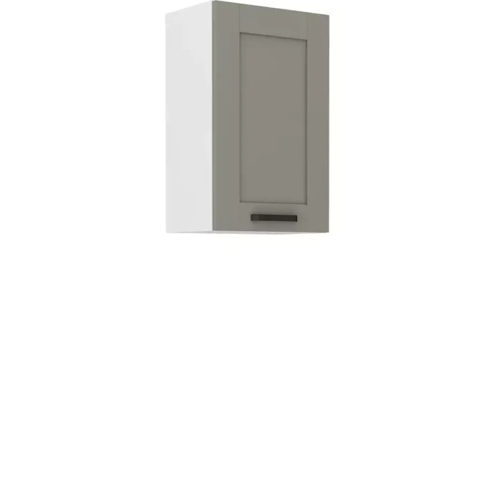 Wisząca szafka kuchenna AWINION posiada dwie półki z płyty laminowanej, więc zyskasz dużo miejsca na kubki i szklanki. Szafka ma drzwiczki uchylne, które wyposażono w zawiasy z system cichego domykania, co gwarantuje delikatne zamykanie i otwieranie drzwi. Wybierz odpowiadający Ci kolor korpusu i frontów, klikając przycisk „Dopasuj i kup”.