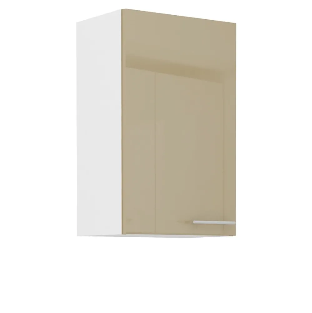 - Front szafki kuchennej wykonany jest z płyty MDF w trzech kolorach wykończonych na wysoki połysk: biały, szary oraz cappucino.