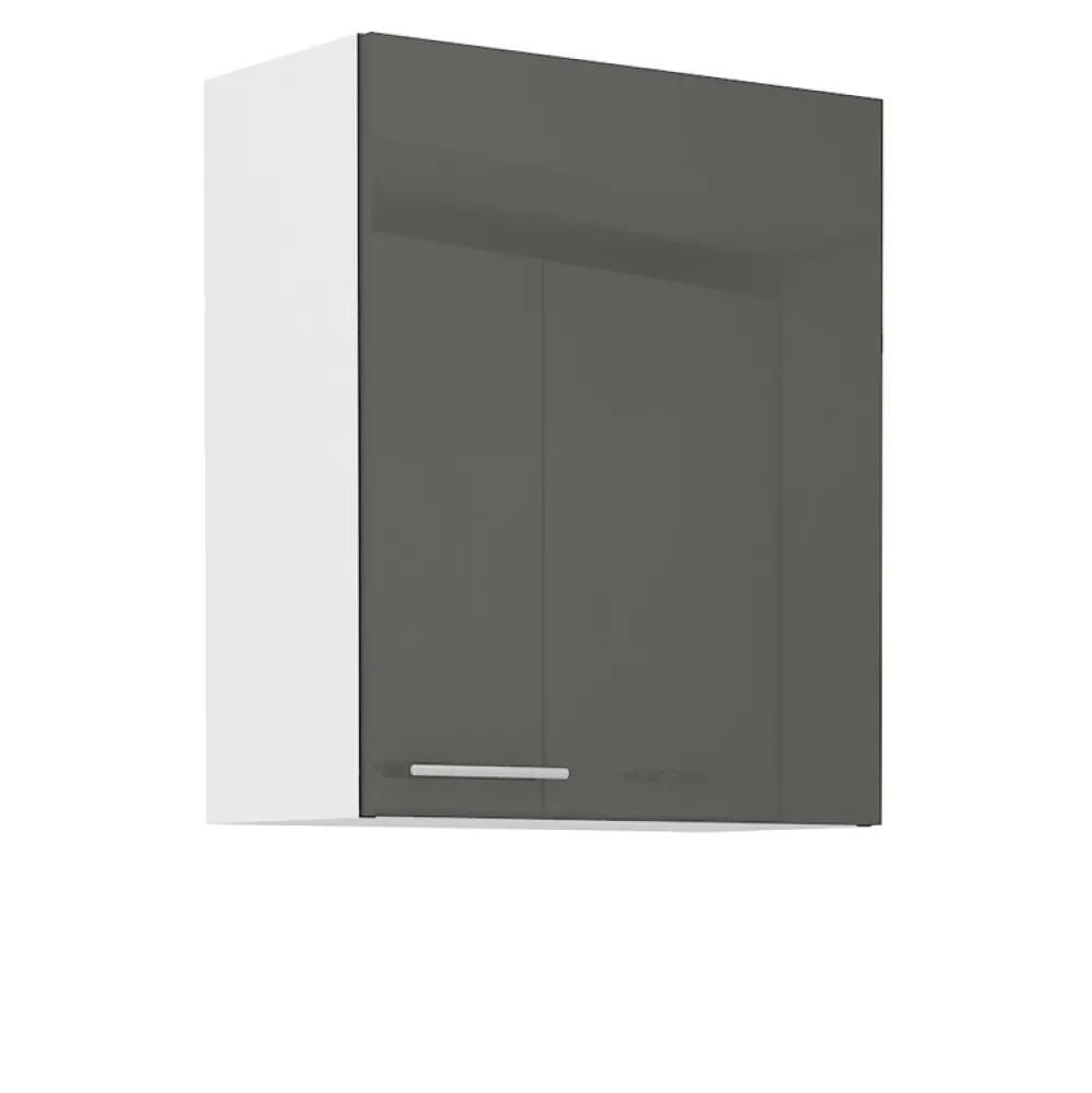 - Front szafki kuchennej wykonany jest z płyty MDF w trzech kolorach wykończonych na wysoki połysk: biały, szary oraz cappucino.