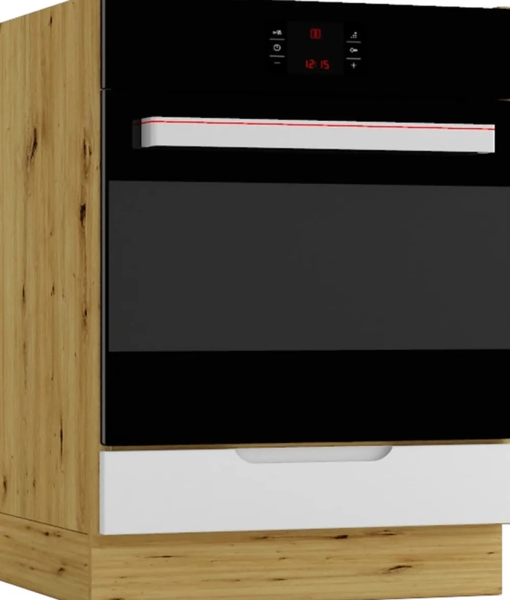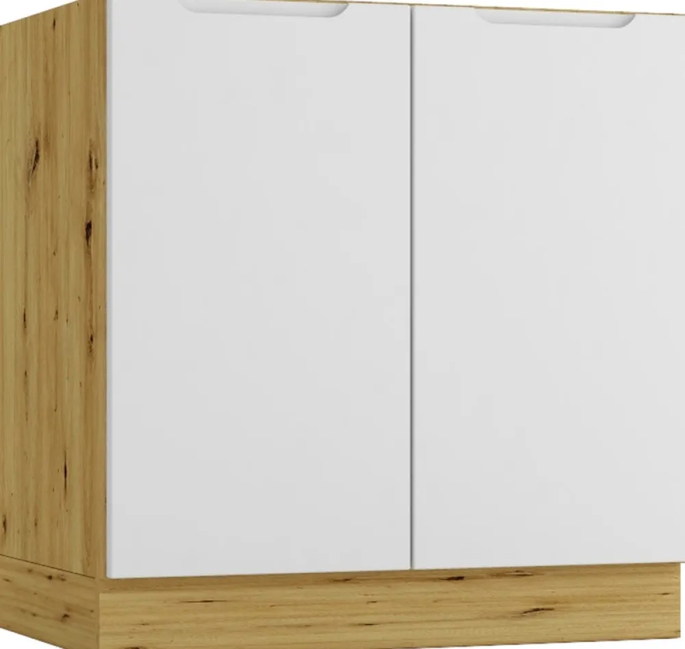 Dolna część zestawu składa się z trzech pojemnych szafek, które zapewniają wygodę i funkcjonalność podczas gotowania. Dwudrzwiowa szafka pod zlew o szerokości 80 cm oferuje przestrzeń na przechowywanie większych przedmiotów, takich jak środki czystości czy kosz na śmieci. Szafka z szufladą i drzwiami (60 cm) to idealne miejsce na przybory kuchenne, natomiast szafka pod piekarnik z dodatkową szufladą (60 cm) pozwala na wygodne przechowywanie blach i akcesoriów do pieczenia. Szuflady poruszają się na rolkowych prowadnicach, co zapewnia ich ciche i płynne działanie.