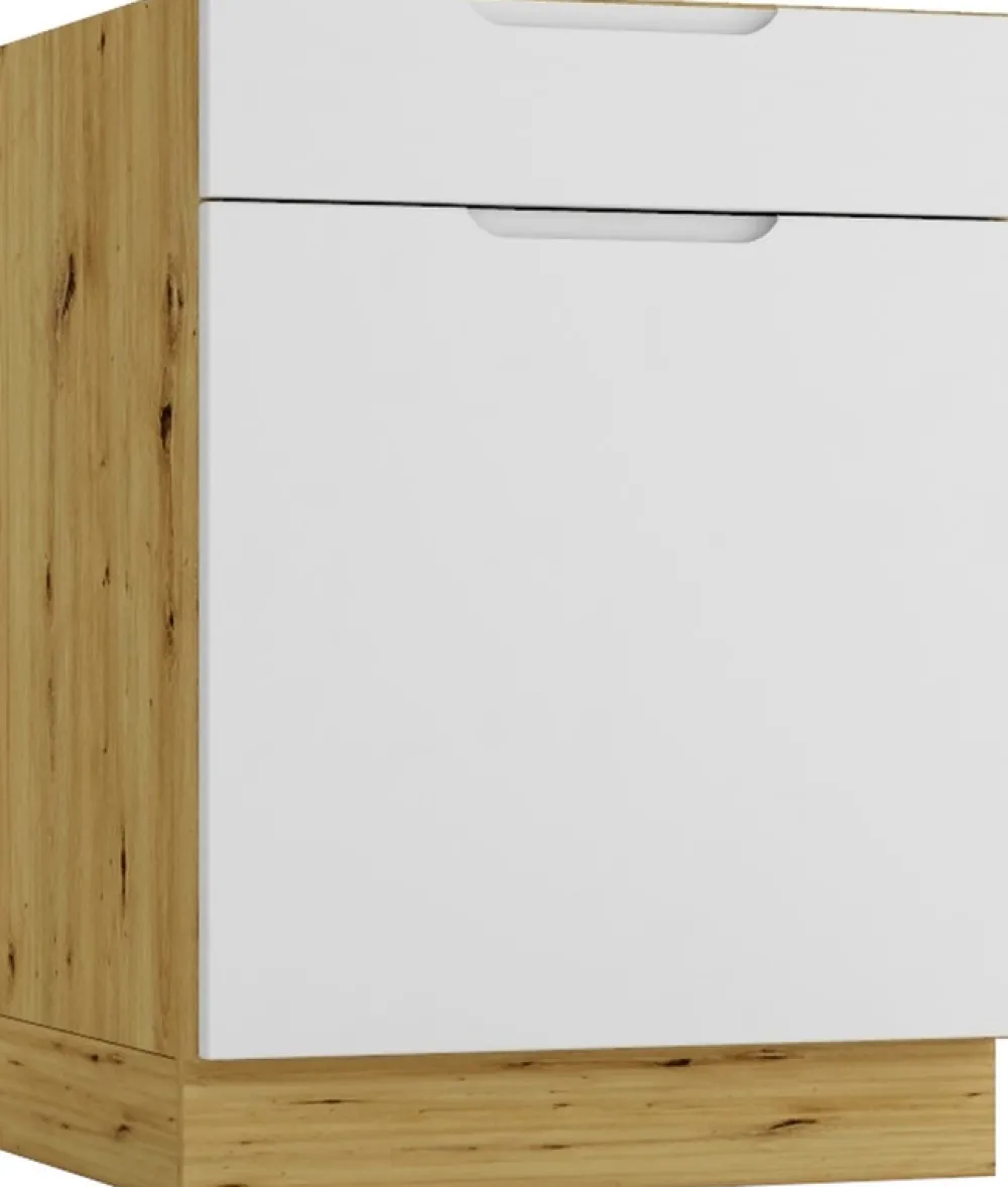 - Korpusy szafek zostały wykonane z płyty laminowanej grubości 16 mm w kolorze dąb artisan.