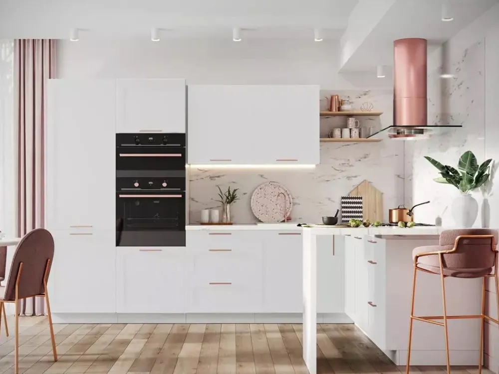 Połącz granatową kuchnię z blatem kuchennym w kolorze calcite grey, a uzyskasz niezwykle nowoczesny klimat we wnętrzu. Aranżacja kuchni utrzymana w ciepłym odcieniu coffe zachwyca i przykuwa uwagę, a w połączeniu z czarnymi uchwytami przedstawia kuchnię w stylu eklektycznym. Białe szafki kuchenne ADELE w połączeniu z drewnopodobnym blatem pozwoli Ci uzyskać kuchnię w stylu skandynawskim. Szare meble kuchenne ADELE to klasyka w nowoczesnym wydaniu. Pudrowy róż na frontach i biały blat z imitacją marmuru wprowadzą do kuchni delikatny, romantyczny, ale nowoczesny look.
