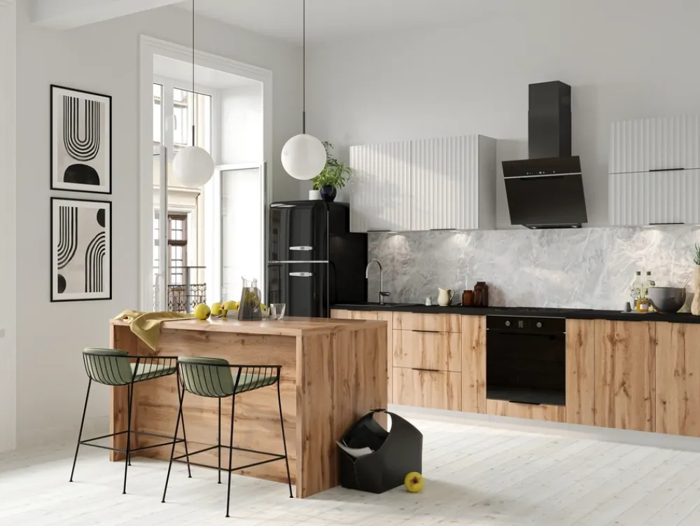 Kombinacja dębu wotan z grafitem pasuje do różnych stylów kuchni, od nowoczesnych po bardziej tradycyjne. Dlatego masz duże pole do popisu podczas wyboru dodatków i aranżacji swojej kuchni.