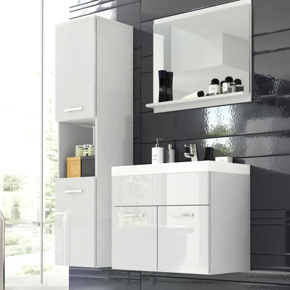 Komplet mebli do łazienki urządzanej w stylu nowoczesnym.