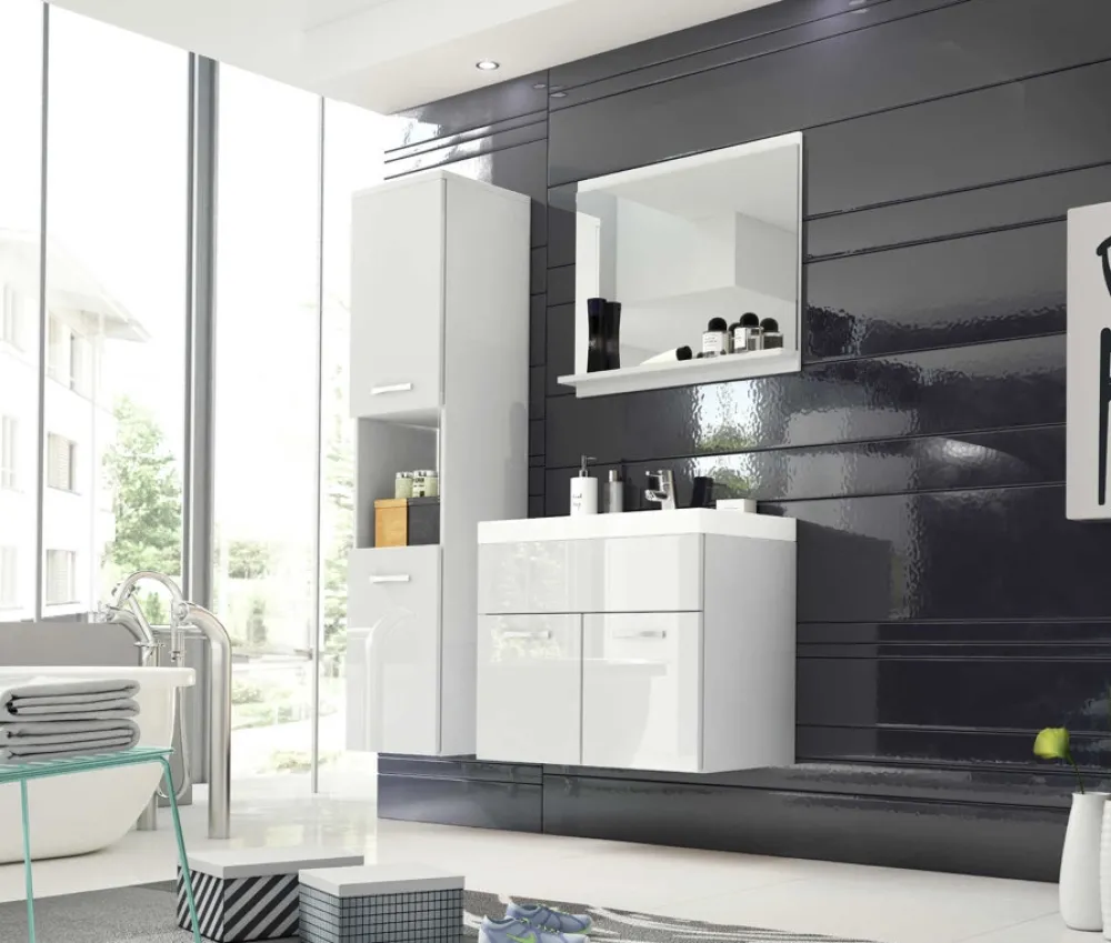 - Komplet mebli do łazienki urządzanej w stylu nowoczesnym.