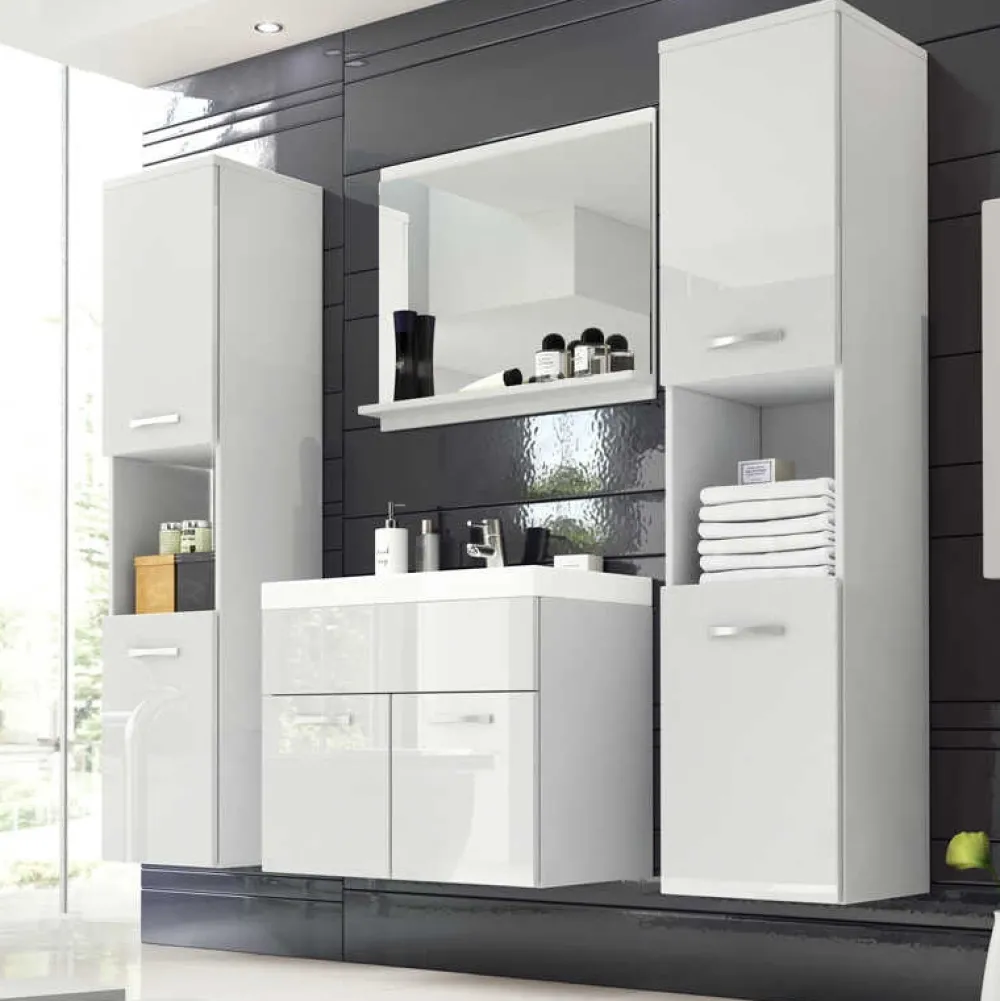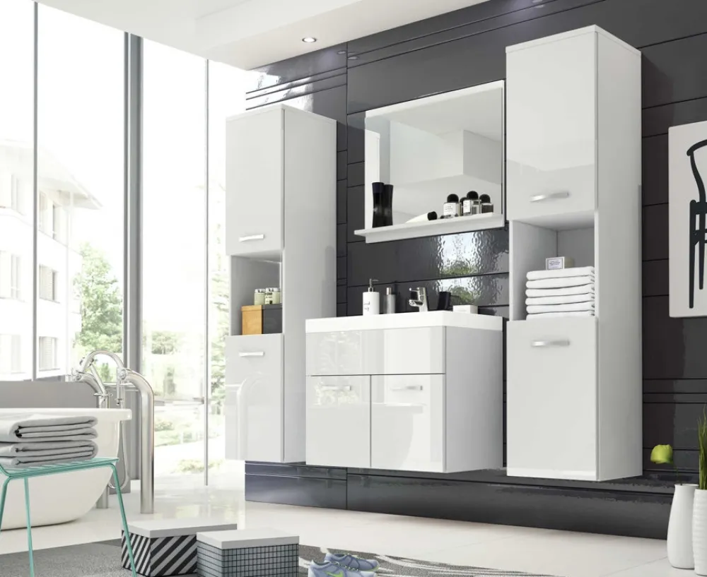 Duży zestaw mebli łazienkowych na wysoki połysk.