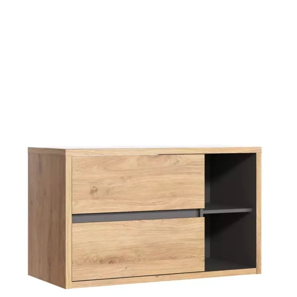 - Fronty wykonane z płyty laminowanej w kolorze Dąb Shetland.