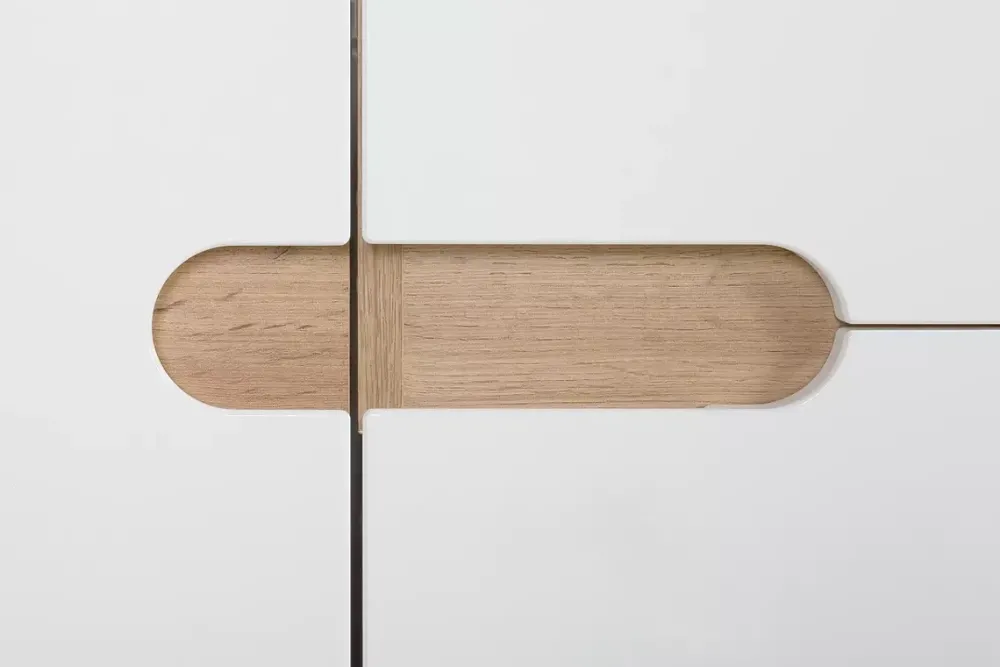 - Brak klasycznych uchwytów, fronty posiadają frezowane uchwyty.