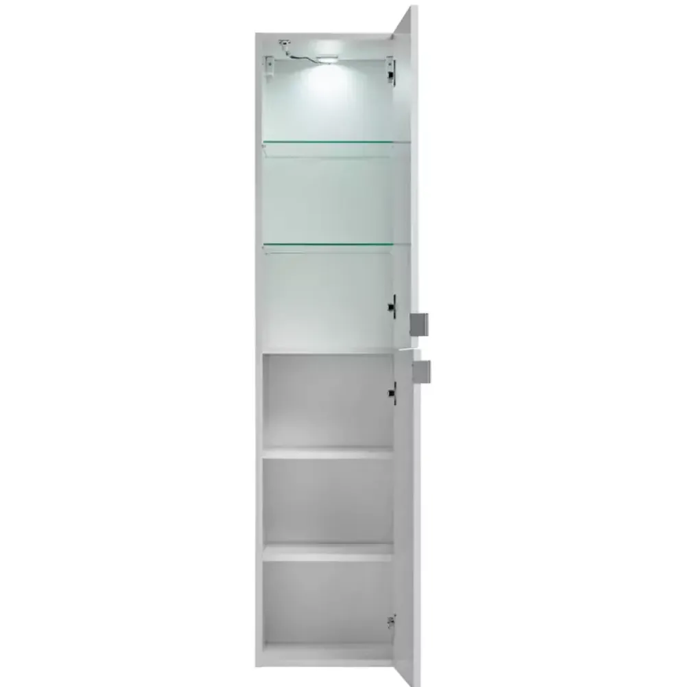 Szafka wisząca LOSELANI jest propozycją wykonaną w nowoczesnej oraz stonowanej stylistyce, dzięki której jest niezwykle uniwersalna aranżacyjnie, oraz uczyni twoją łazienkę ponadczasową i wyjątkową. Szafka posiada parę drzwi, za którymi znajduje się pięć półek, z czego dwie wykonane ze szkła hartowanego. Dodatkowo drzwi szafki zostały wzbogacone bezgłośnym mechanizmem cichego domyku, a same uchwyty wykonano z metalu z chromowanym wykończeniem.