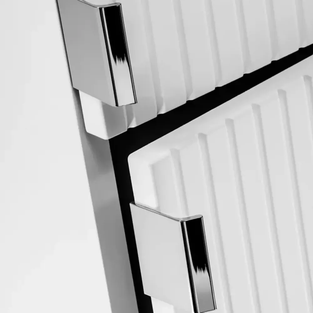 - Uchwyty szafki zostały wykonane z metalu z chromowanym wykończeniem.