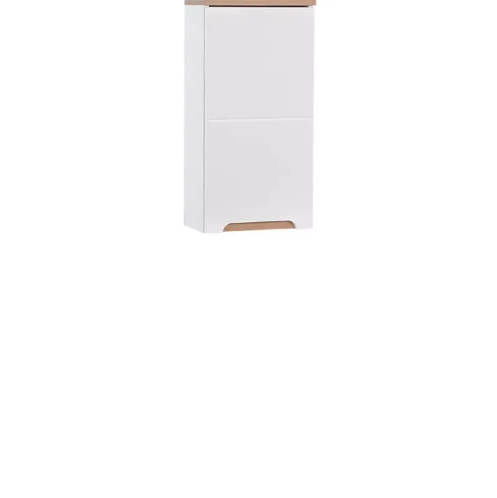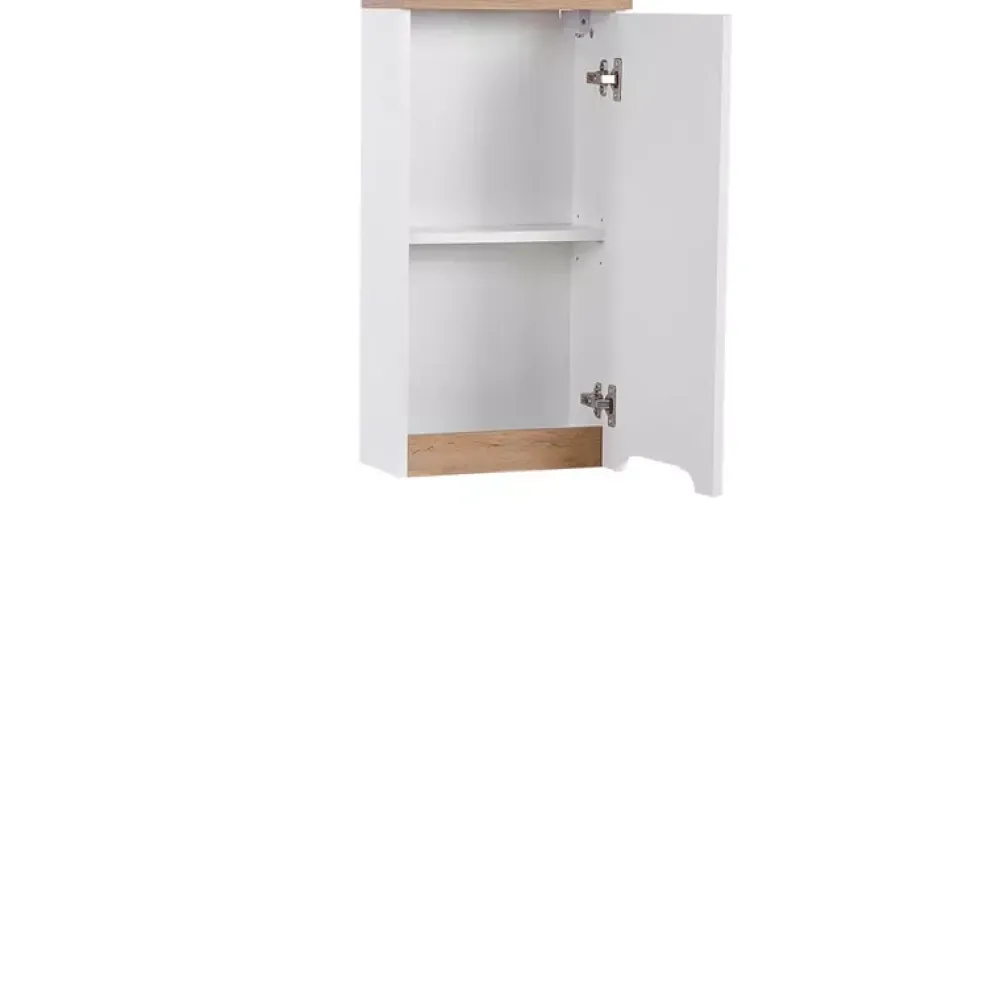 - Górna szafka łazienkowa z półką. Szafka wisząca o szerokości 35 cm, wysoka na 70 cm, oraz głębokość 20 cm.